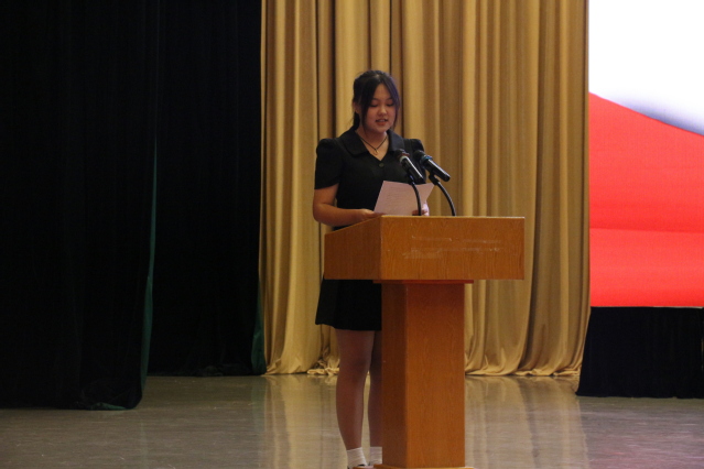 公司社团指导中心主任董青林作本科生代表发言。她希望学弟学妹作为新时代老员工在品德、学习、生活方面不断约束提升自己,制定一个切实可行的目标,发挥主观能动性,勇于突破,并祝愿2023级新生在公司度过一段精彩而有意义的大学时光。