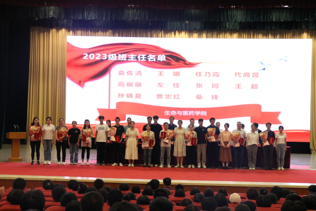随后,公司领导为2023级本科生班主任颁发聘书,2023级员工代表上台为班主任敬献鲜花。