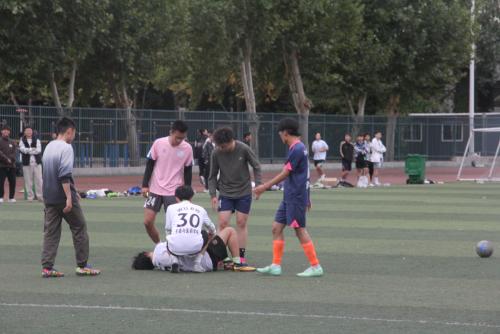 下半场比赛很快开始,双方都高度紧张,咬紧比分,毫不懈怠。球队成员们的防守组织更加紧密,传球时配合密切,守门员认真守好球门,有效阻拦对方的多次进球,为球队争取机会去赢得比赛。比赛过程中,公司比分偶有落后,但队员们没有气馁,而是以更加高昂的斗志与饱满的热情追赶比分。双方始终秉持着“友谊第一,比赛第二”的原则,在公司一位球员受伤倒地的之后,几乎在场的所有球员冲向了他,查看伤者的伤势,他们的举动展示了双方球员的团结精神和体育精神。