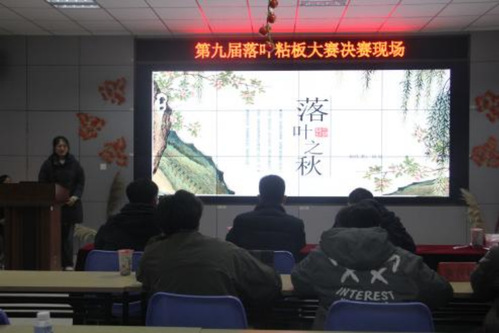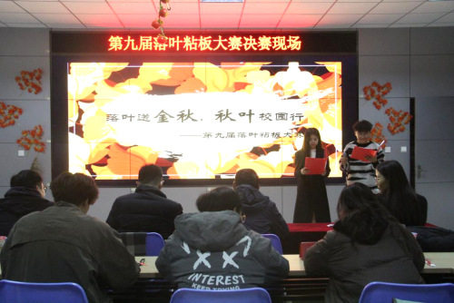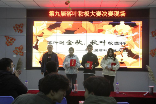 活动中,参赛选手依次上台进行PPT讲解或小视频展示,围绕作品创意来源、创作理念、创作过程等方面,来展示制作过程中团队成员的分工合作和灵感碰撞,分享制作过程中发生的趣事和萌生的创新元素。各团队的作品紧扣主题,独具匠心,参赛选手逻辑精密,讲解过程条理清晰风趣幽默,在评委面前缓缓铺开一幅幅秋日画卷。童年记忆,民俗故事,神话传说,秋日画卷笔触中情意丰盈,叶与叶的交汇间表露出对山理工植物覆盖和秋日风致的细致观察,极富有感染力和表现力。作品同时兼顾了巧妙设计和环保低碳,回收利用牛奶箱和纸板等废弃物。随着精妙绝伦的答辩轮番上台,活动逐渐走向尾声。