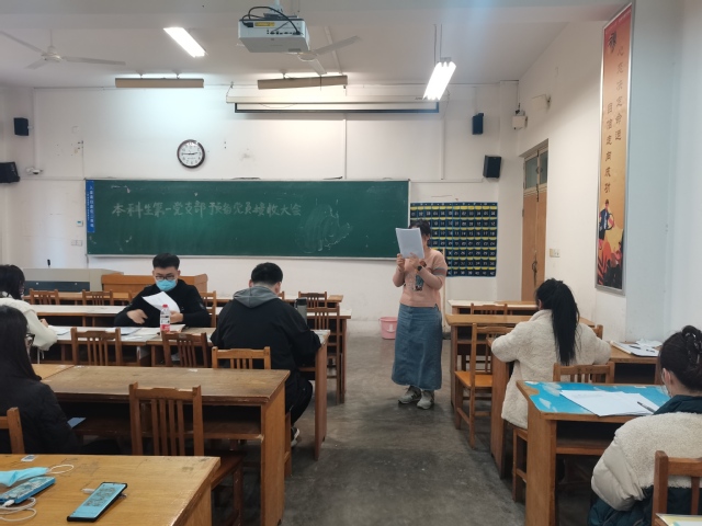 随后,周梓萱等17名同志依次宣读了《入党志愿书》,汇报了个人对党的认识、入党动机、本人履历、家庭成员及主要社会关系、现实表现以及需党组织说明的其他问题。全体人员听取入党介绍人情况介绍和支委会审查报告,现场对能否入党进行了充分讨论,并由与会正式党员进行了无记名投票表决。李超现场通报了投票结果,同意接收8名同志入党,并请其作表态发言。全体党员对新党员表示祝贺。