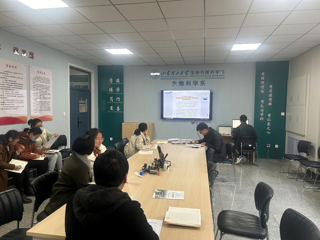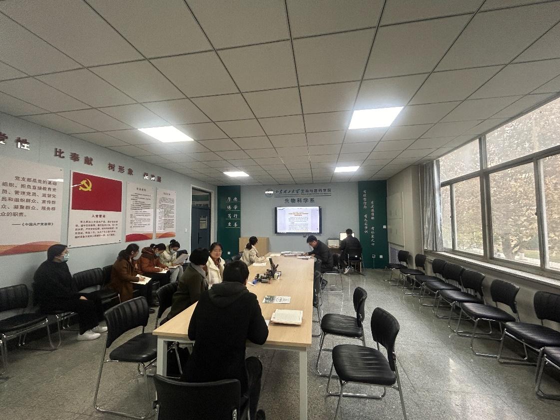12月7日下午,生物科学系教工党支部在13教255党员活动室召开了集中学习会议。本次会议由支部组织委员代尚昆同志主持,支部部分党员和生科系部分非党员老师参加了此次会议的学习交流。