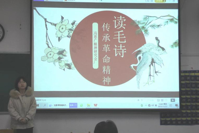 12月21日下午,betway西汉姆联在十三号教学楼203室举办“读毛主席诗词,传承革命精神”诗词朗诵活动。本次活动由betway西汉姆联冯思广精神学习研究会组织,部分员工参加。