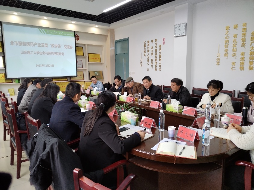 荆刚、董继红等分别介绍了淄博市市场监管局及三分局服务全市医药产业发展工作及检验检测技术服务能力等情况。