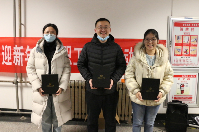 “抽奖彩蛋”环节,班子成员为9名同事送去了幸运祝福,并发放了纪念品。