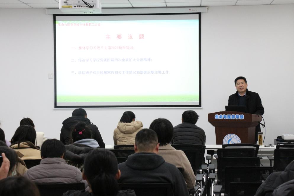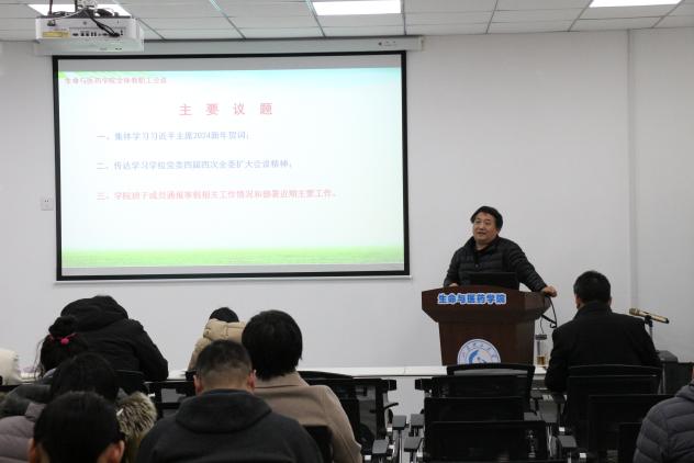 会上,全体教职工集体观看了《国家主席习近平发表二〇二四年新年贺词》视频资料,王光坊结合贺词内容,围绕当下国家经济社会发展形势和公司公司事业发展实际,就扎根各自岗位明确使命任务、抢抓学科专业发展新机遇,向大家提出了明确希望。