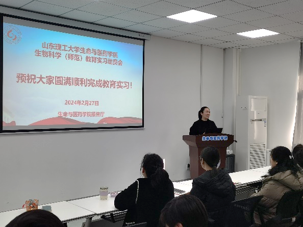 2024227日,公司在13号教学楼215报告厅举行了2021级生物科学(师范类)教育实习支教动员大会,公司党委副书记姜素琼、副经理赵倩、学术副经理徐佳宁,生科系党支部书记李超群、系主任张建勇、系副主任季东超,员工辅导员李超,全体实习指导教师和生物科学(师范类)专业2021级全体员工参加。会议由张建勇主持。
