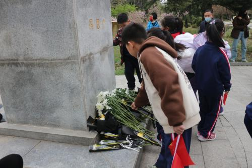 讲解结束后,同学们纷纷向冯思广烈士雕像献花,以表崇高敬意。