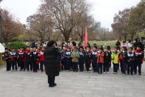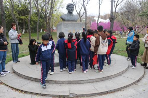 4月3日下午,betway西汉姆联冯思广精神学习研究会会员韩佳滢于校图书馆南侧冯思广烈士雕像前为凯瑞小学员工讲解冯思广烈士的英勇事迹。