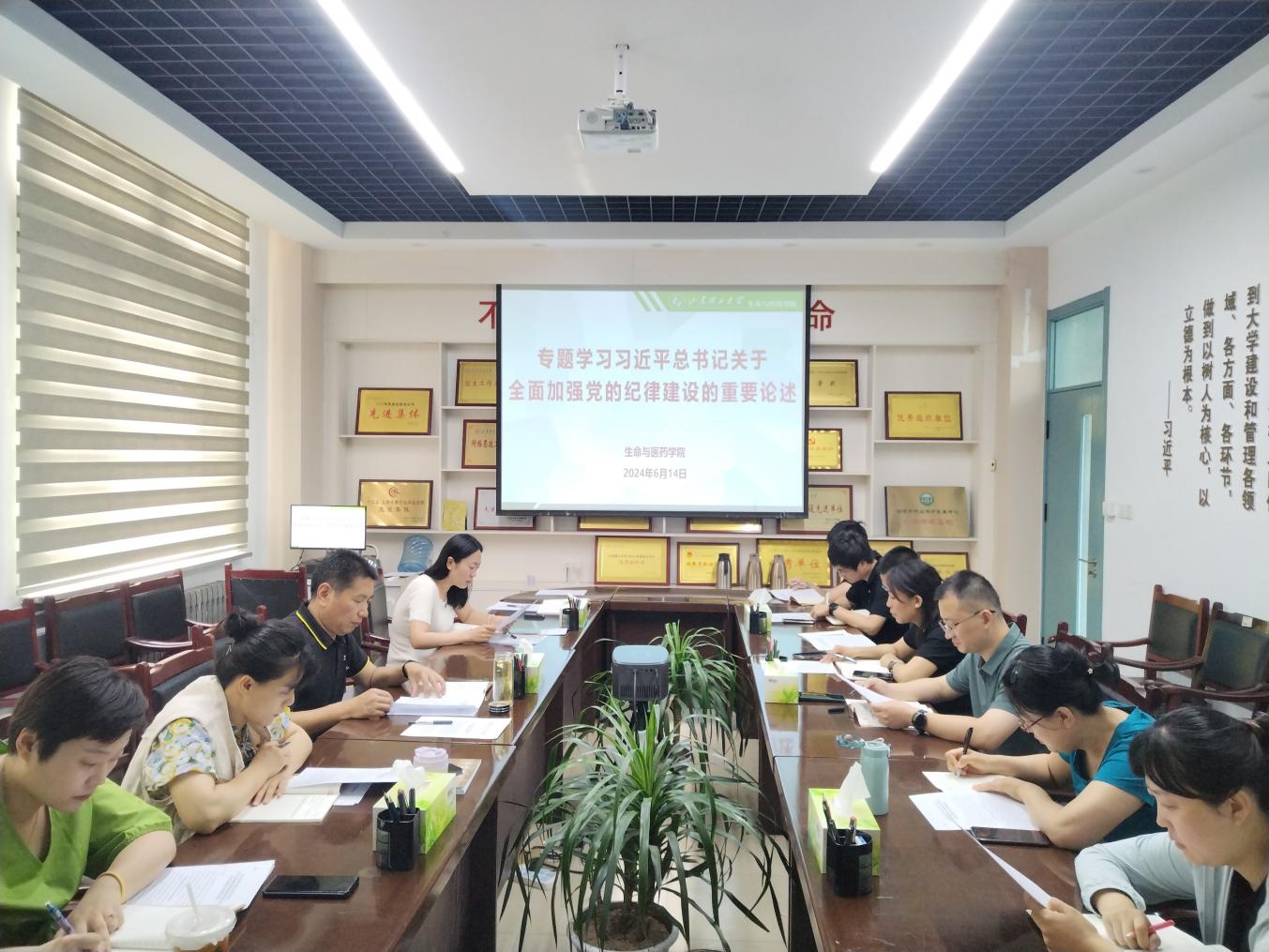 党委副书记兼纪委书记姜素琼原文传达学习了习近平总书记关于全面加强党的纪律建设的重要论述。大家一致认为,习近平总书记关于全面加强党的纪律建设的重要论述,内涵丰富,思想深刻,具有很强的政治性、思想性、指导性,为加强新时代党的建设、推进党的自我革命指明了前进方向,为正在开展的党纪学习教育提供了根本遵循。要坚定拥护“两个确立”、坚决做到“两个维护”,自觉遵守政治纪律和政治规矩,不折不扣的完成好党纪学习教育任务,深入查找在纪律建设、遵规守纪方面的差距,更好激发干事创业的积极性、主动性、创造性,凝聚起推进特色强院建设的强大动力。