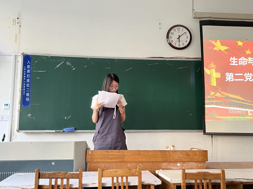 翟静涛代表支部全体党员为新党员加入表示欢迎与祝贺,介绍了预备期考察及按期转正申请等相关事宜。要求大家提升政治素养,利用党纪学习教育等契机,自觉学习党的理论知识,筑牢信仰之基;要强化宗旨意识,在学习生活中以高标准严格要求自己,提升综合素质,在为师生服务中表率;要主 动担当更要有所作为。