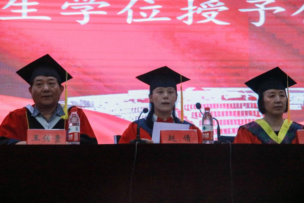 在热烈掌声中,公司党委书记王光坊,执行经理王传贵,副经理邓洪宽、赵倩,学位评定分委员会委员熊鹏、刘文、姜立波、徐恒戬、宋新华、高秀珍等10名教师为获得学士学位的毕业生颁发了学位证书。