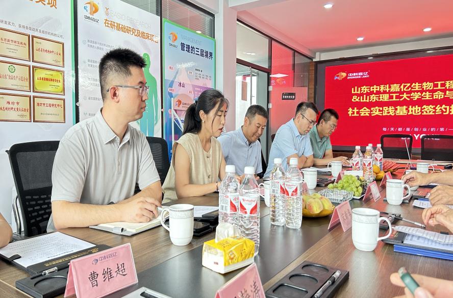 山东中科嘉亿生物工程有限公司董事长潘玉林对公司一行表示热烈欢迎。从企业发展历程、企业文化、经营理念及模式、建设成果、未来发展前景等方面介绍了企业有关情况,就进一步加强校企合作表达美好期许。