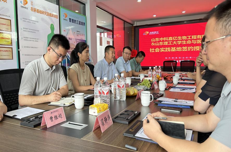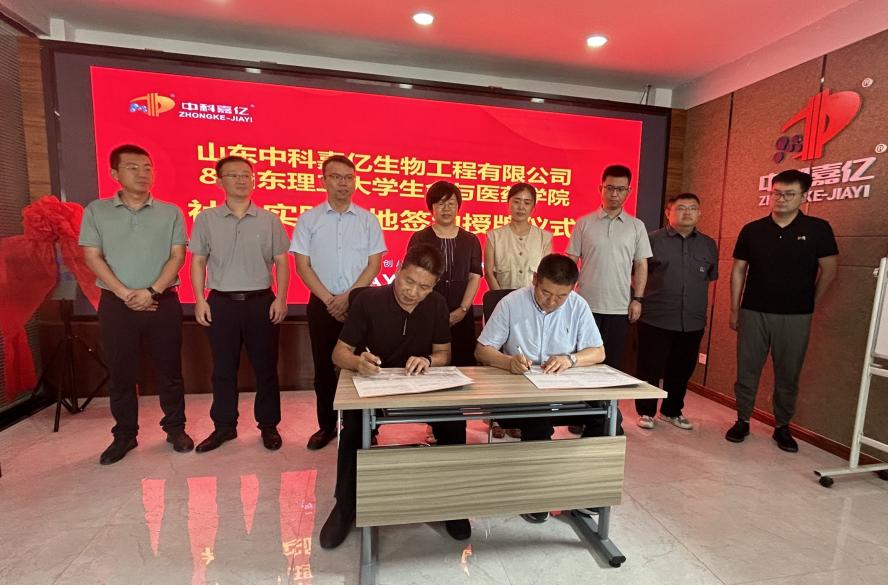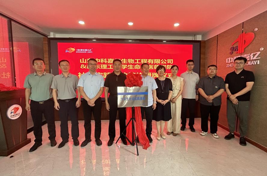 7月12日,由科技副总、社会实践专业指导教师、辅导员等组成的暑期社会实践走访队伍,在公司党委书记王光坊带领下来到山东中科嘉亿生物工程有限公司看望暑期社会实践团队,并在公司办公楼三楼会议室举行了社会实践基地签约挂牌仪式。青州市邵庄镇人大主席王晓晴、副镇长孙宁昆,公司董事长潘玉林出席,公司学术教授、企业科技副总孙文龙,公司教学工作办公室、实践团队专业指导教师宋新华,辅导员翟静涛、李超参加。仪式由公司总经理司书锋主持。