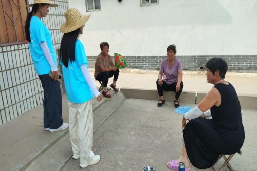 为了让农民了解大豆玉米带状复合物的种植,硅小蒜科技助农团的成员向农民介绍大豆玉米带状复合物的种植的目的以及它的优势。在向农民介绍大豆玉米带状复合物种植的目的及优势过程中成员们提到进行大豆玉米带状复合物种植主要是为了提高土地利用率、增强作物抗逆能力、提高土壤肥力、以及实现玉米基本不减产的同时多收一季大豆。