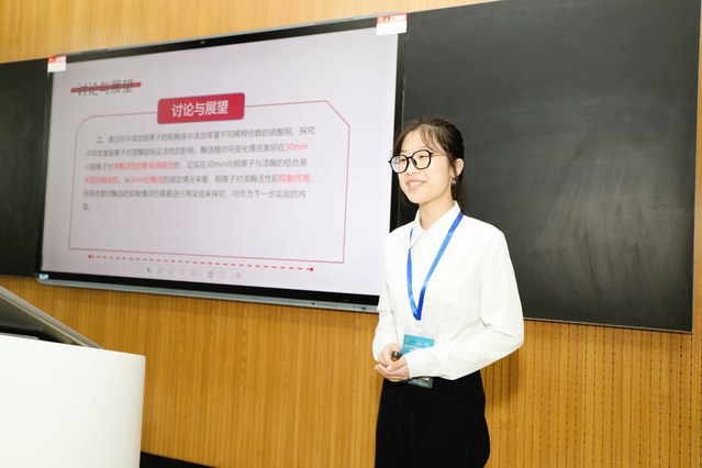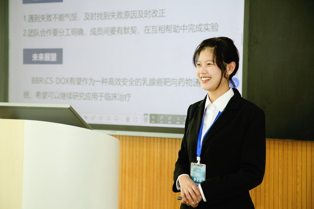 公司生科2102班董丽萍作为参赛员工代表发言,热情欢迎各位领导老师、同学们来校参赛,分享了个人备赛的心得感悟,向各位领导老师致谢并期待同学们的精彩表现。