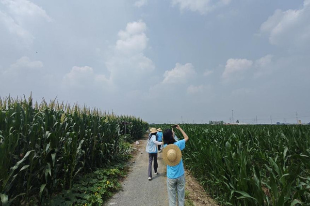 睦和村与姜庙村相邻,硅小蒜科技助农团队参观了大片的玉米大豆复合种植基地,高低不同的大豆和玉米随风轻摇叶子,感受到了大豆玉米复合种植带来的生机与活力,更被这里美丽宁静的乡村风景深深吸引。