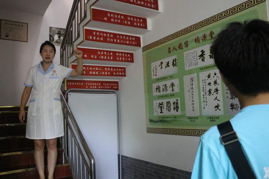 接下来,她带我们了解了橘源堂的发展史和传承史,讲解的过程中,她提到橘源堂国医馆是鲁派中医的代表之一,经历漫长岁月的考验,橘源堂的行医文化得到了长足的发展,“医者仁心”是他们一以贯之的行医标尺。