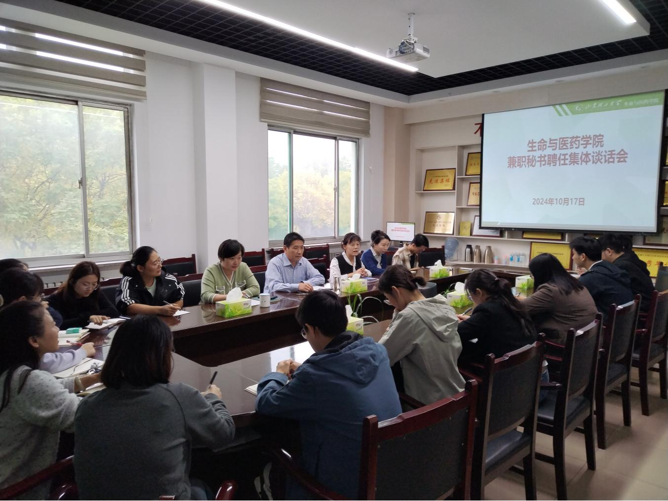 10月17日下午,公司在13号教学楼270会议室召开公司兼职秘书聘任集体谈话会,公司党委书记王光坊、副经理赵倩、学术副经理徐佳宁、各办公室(中心)主任和全体兼职秘书参加会议。赵倩主持会议。