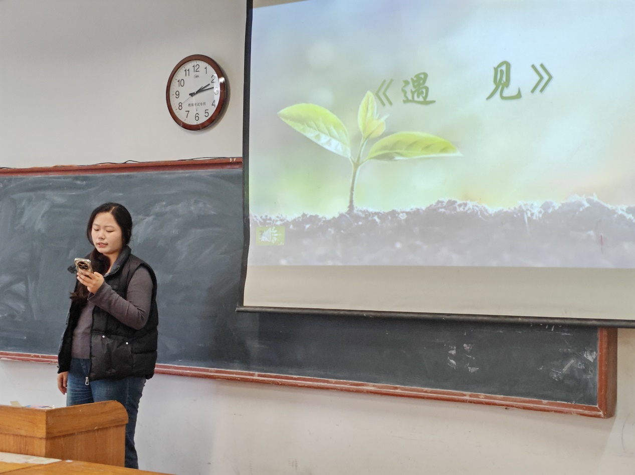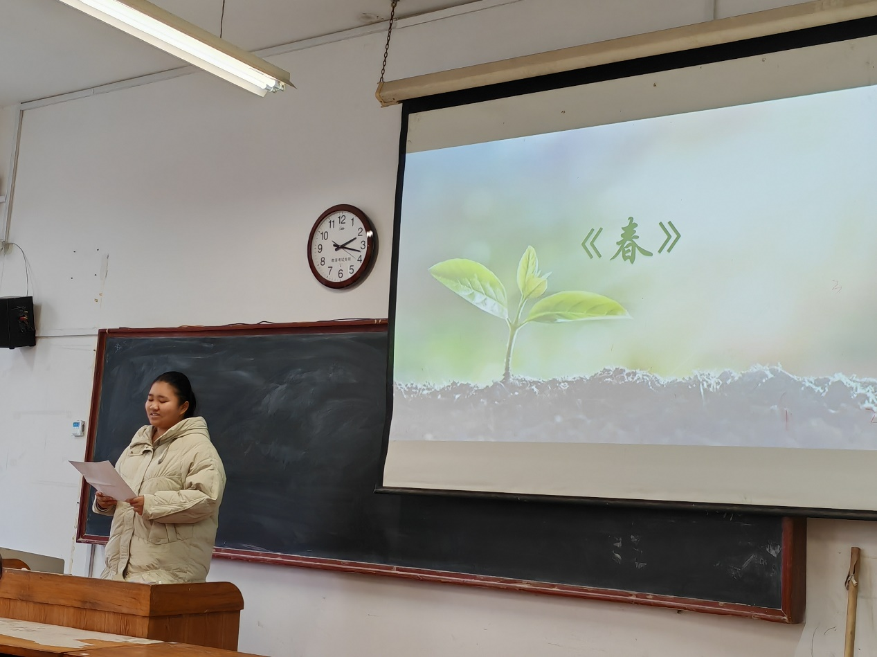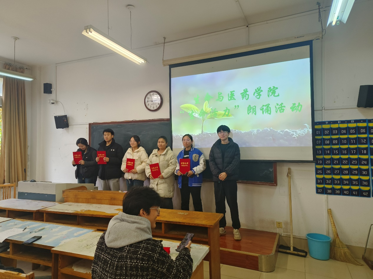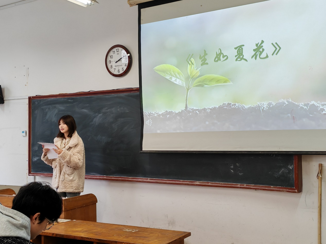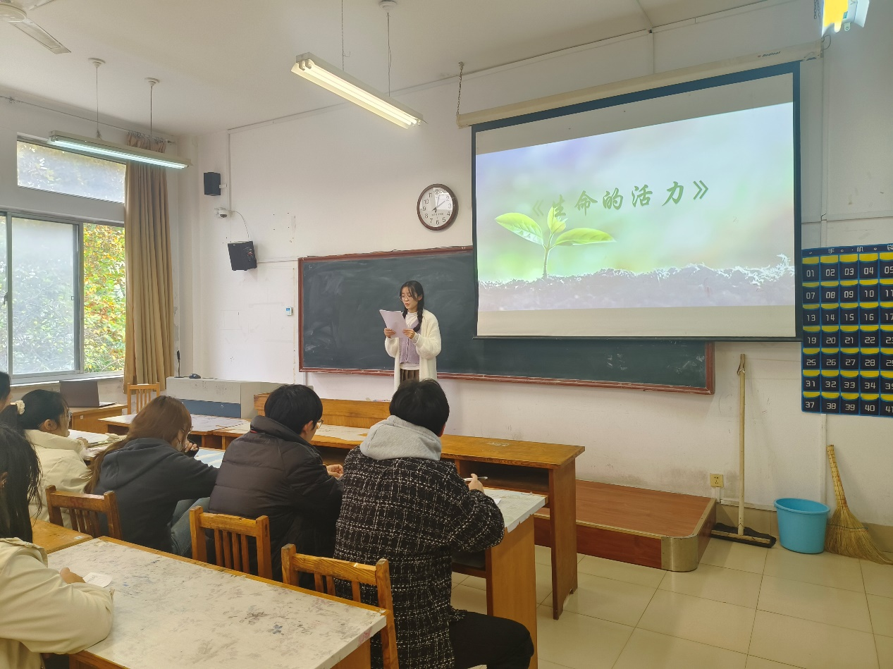 八位同学依次进行了《生命的活力》《青春》《生如夏花》《遇见》《春》《相信未来》《致橡树》《生命是一树花开》的朗诵。参赛同学感情真挚饱满、富有生命活力。