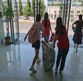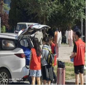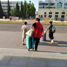 同学们在宿舍楼下积极帮助毕业的学长学姐搬行李,身着红色马甲的同学们积极帮助毕业生搬行李,他们按照事先规划的路线和分工,有序地展开搬运工作。有的志愿者负责在宿舍楼下引导,有的则负责将行李搬运至校园内的临时存放点,还有的则协助毕业生将行李装车。