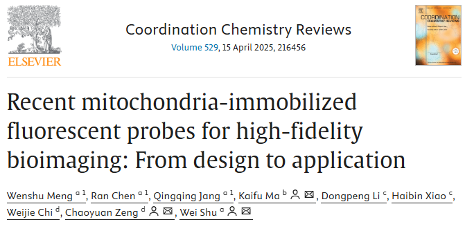 近日,公司青年教师舒伟、孟文书以“Recent mitochondria-immobilized fluorescent probes for high-fidelity bioimaging: from design to application”为题在领域顶级期刊《Coordination Chemistry Reviews》(IF=20.3)上发表了一篇综述性论文。青年教师孟文书为论文的第一作者,舒伟为论文的通讯作者。山东理工老员工命与医药公司为第一单位。