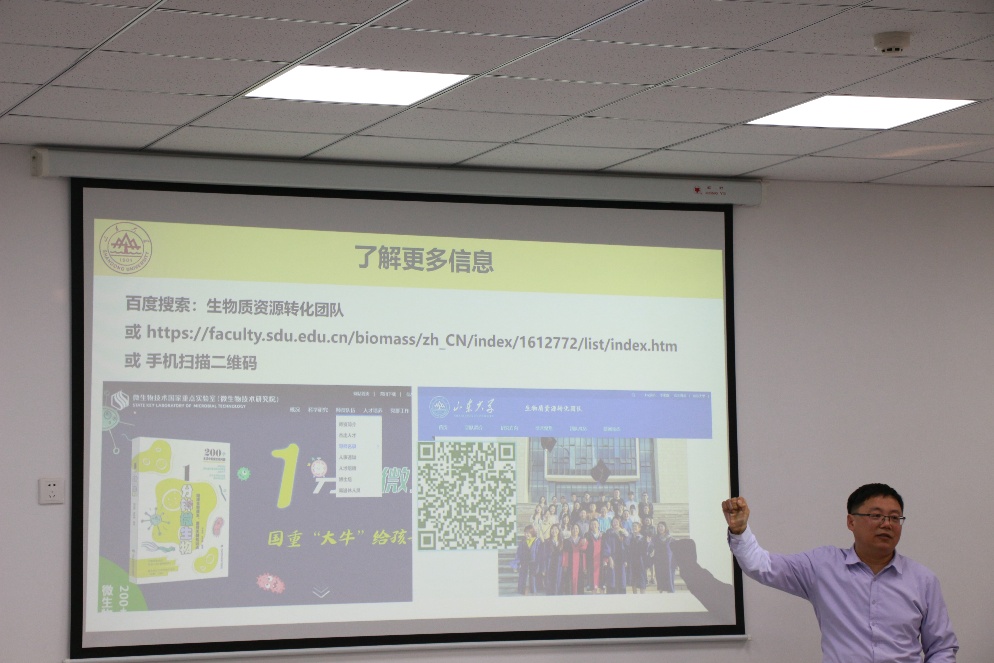报告中,赵建教授对所在团队有关情况进行了介绍,结合当前国家有关政策,揭示了生物制造的广阔前景。他指出,发展生物质经济是一种历史的回归,所在团队也将围绕木质纤维素生物转化和综合利用开展基础和应用技术研究,勉励同学们继续坚定专业发展前景,积极踊跃通过考研等持续进行学术深造,为我国生物学科发展和国家建设注入更强劲动力。分享中,他希望广大青年学子要秉持刻苦钻研精神,努力成长成才,并就关注团队发展、加入团队共同开展有关研究发出诚挚邀请。