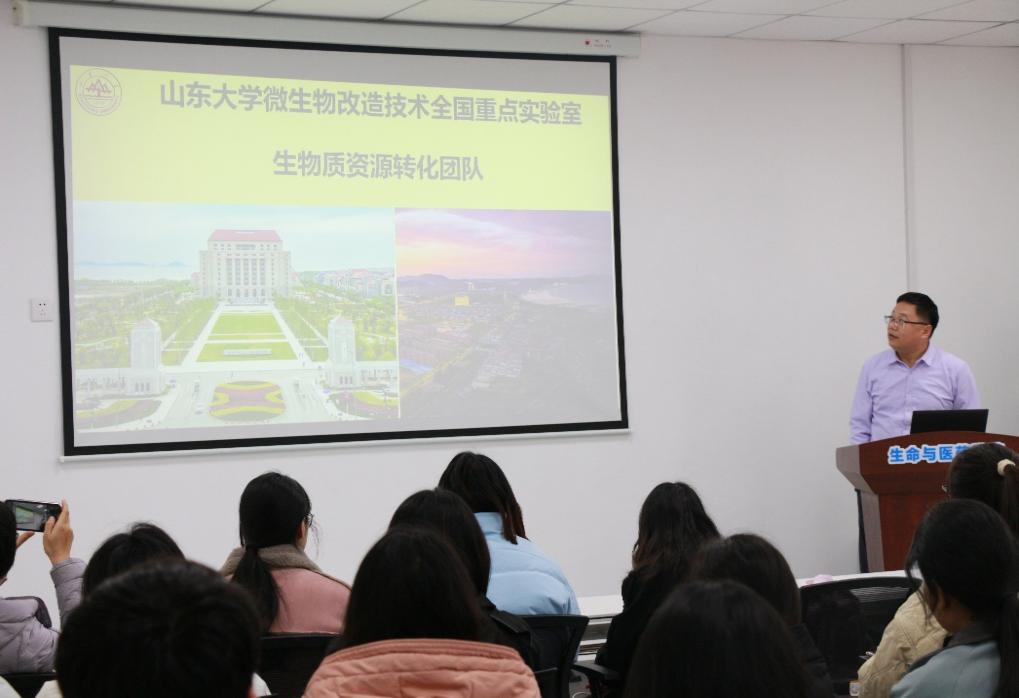 3月6日下午,山东大学微生物改造技术全国重点实验室生物质资源转化团队负责人赵建教授应邀来院作考研宣讲报告。公司党委副书记姜素琼出席并主持,生物工程系系主任高秀珍、辅导员翟静涛及2022级、2023级部分学子参加。
