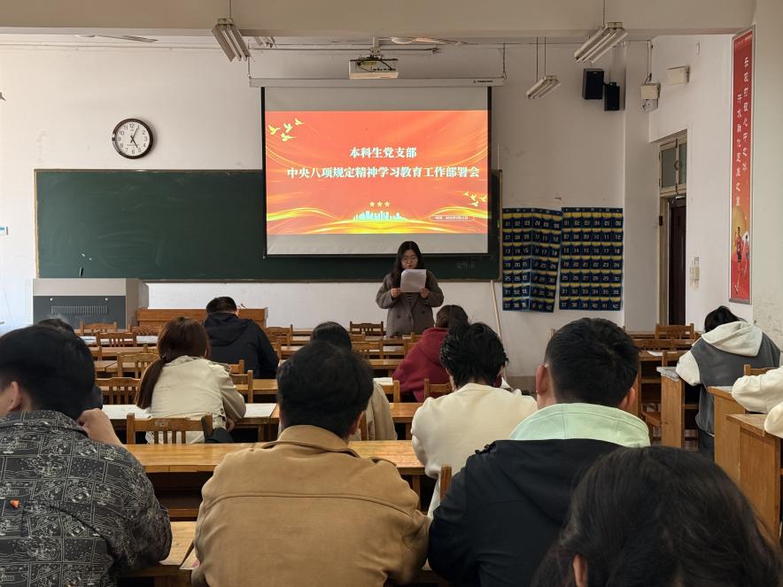 3月31日,公司本科生第一、第二党支部在13教201室召开本科生党支部深入贯彻中央八项规定精神学习教育部署会,传达学习公司党委关于实施深入贯彻中央八项规定精神学习教育实施方案及具体工作要求,通报支部专项学习安排。支部书记主持,全体党员参加。
