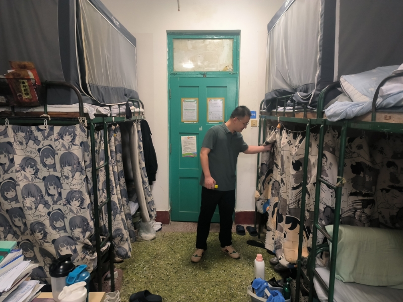 期间,老师们对各宿舍进行了逐间走访,查看卫生大扫除情况,对个别卫生清扫不及时、不彻底宿舍进行了现场整改,并对在宿安全用电和外出安全等进行了强调。