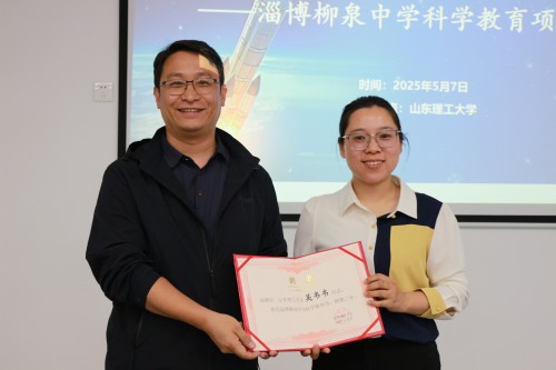 活动最后,张永青为吴韦韦颁发聘书,聘请其为淄博柳泉中学科学辅导员。
