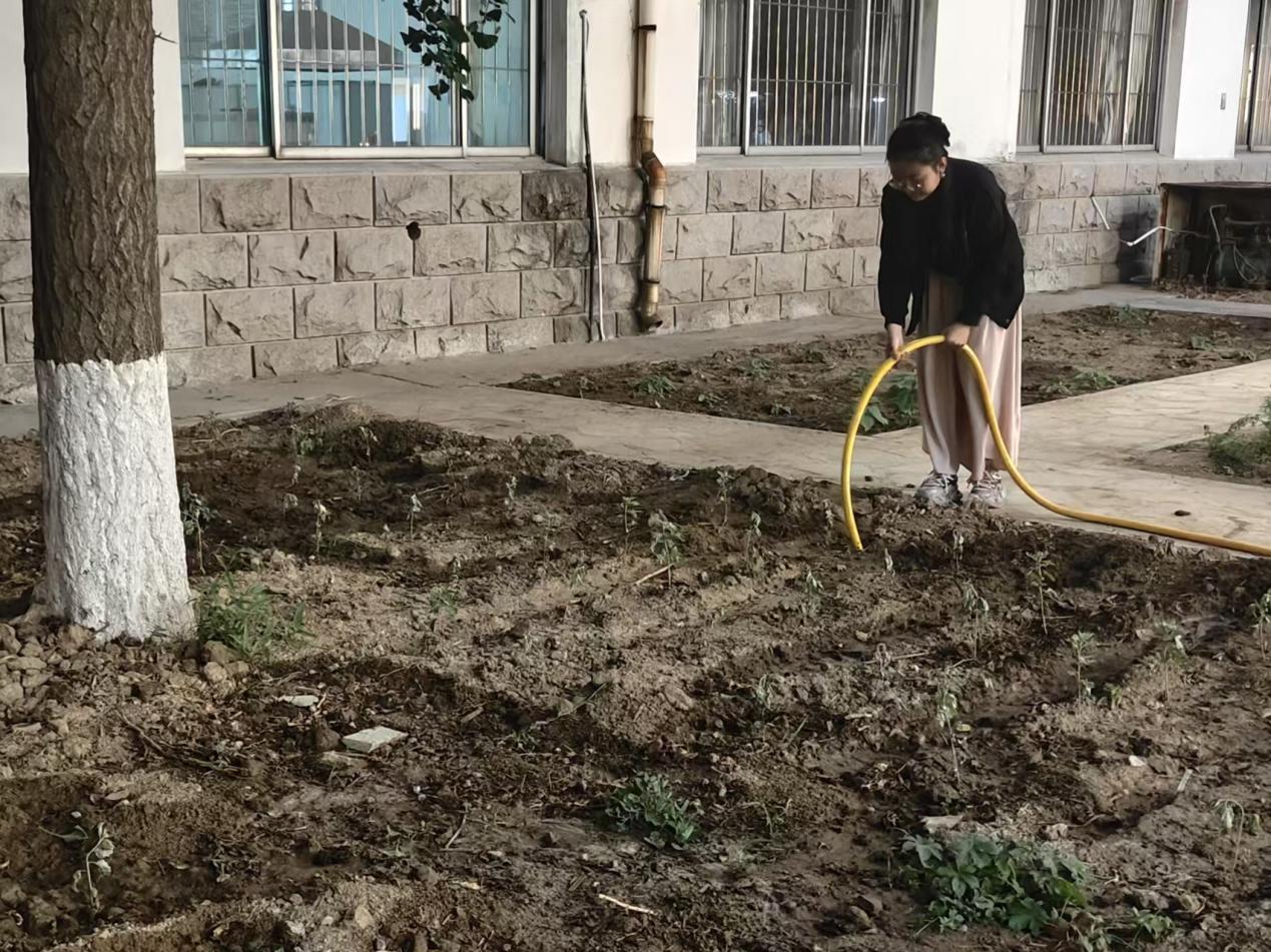 傍晚同学们自发前来浇水,在同学的坚持劳作下,一个个小生命更加精神抖擞,奋力去吸取养分。相信不久,它们就会变得更加茁壮,同学们的劳动也会换来新的收获。