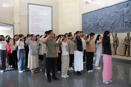 展厅参观后,全体党员列队烈士壁和烈士陵园,并沿青石台阶而上,在烈士纪念碑前举行了默哀仪式,为争取民族独立与人民解放英勇捐躯的革命先烈致以最深切哀思与最崇高敬意。