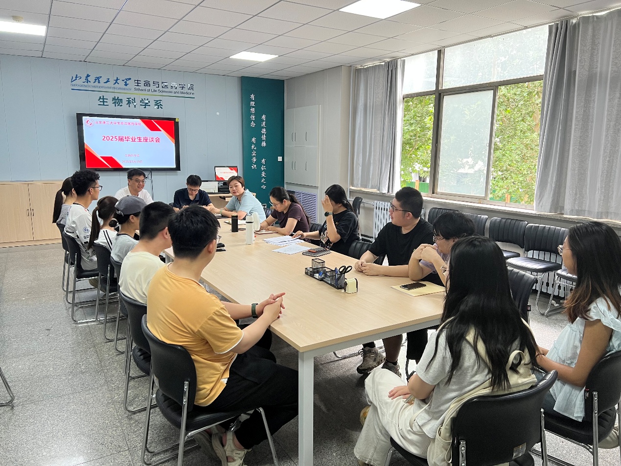 6月19日上午,生物科学系在13号教学楼255会议室举行了2025届本科毕业生座谈会,学术副经理徐佳宁、生科系主任张建勇、毕业班班主任、任课教师代表、生物科学系2025届本科毕业生代表参加。会议由系主任张建勇主持。