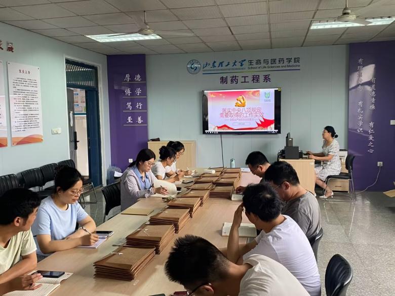 为深入贯彻落实全面从严治党要求,持续推进党风廉政建设,进一步增强党员干部的纪律意识和规矩意识,6月27日,制药工程系与生物医药研究院教工党支部组织开展深入贯彻中央八项规定精神学习教育专题党课。会议由党支部书记曹忠红主持,支部全体党员参加学习。