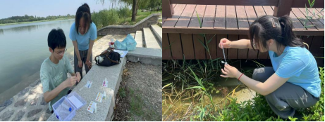 随后,在麻大湖畔,成员们充分发挥生命科学和医药学科的专业优势,严格按照规范流程操作。利用便携式专业设备与标准化目视比色卡,成员们现场对水样的pH值、溶解氧、氨氮值以及亚硝酸盐含量等核心指标进行了原位快速检测与分析,力求绘制出反映麻大湖当前水质状况的精密“图谱”。
