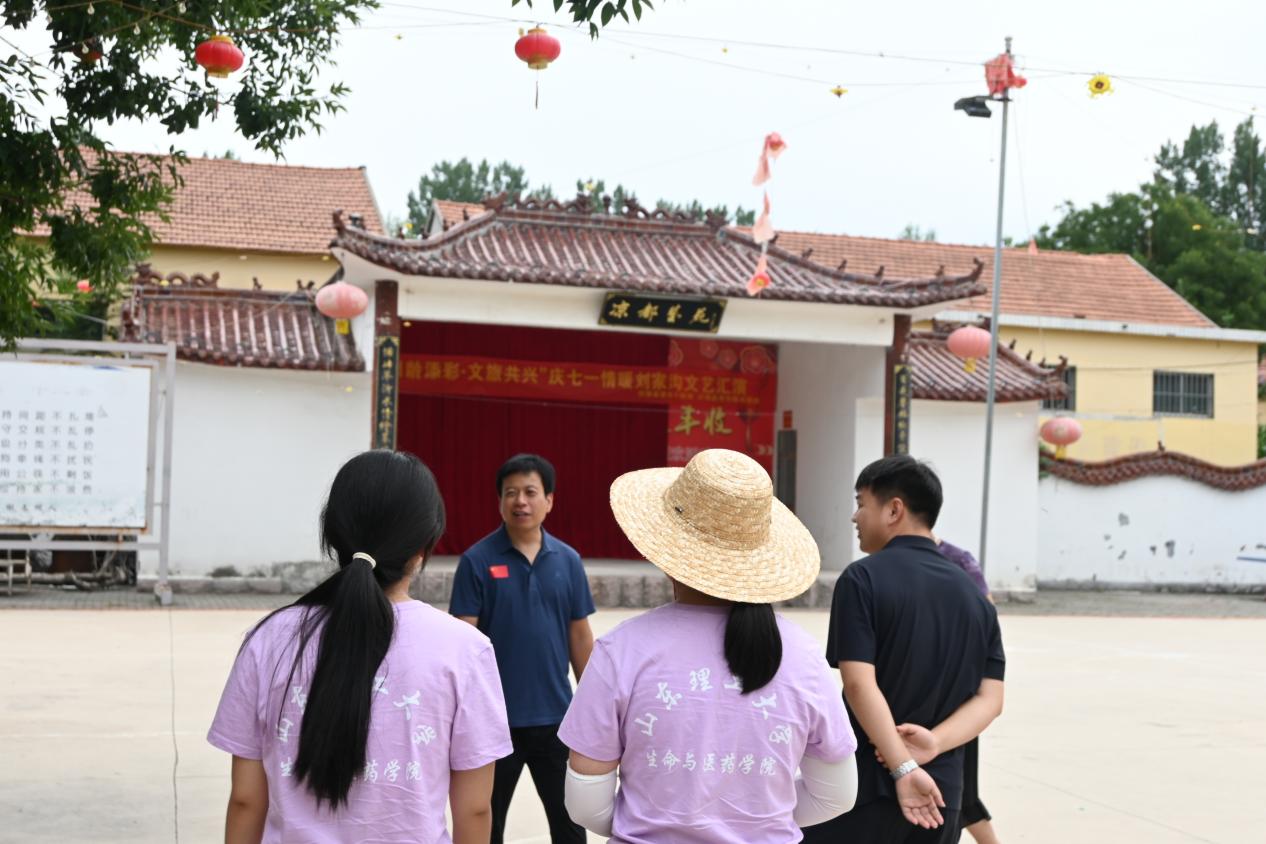 村支部书记向成员们介绍了村里最具特色的文化活动场地——凉都艺苑戏楼。村里通过成立凉都艺苑文艺团队和文化志愿队伍,向游客展示本土特色的文艺演出,带动乡村发展。且据村书记的补充,成员们还了解到,刘家沟村现在是betway西汉姆联职工传统文化示范点,建立了职工文化交流基地,每年的中秋团圆宴,理工大的职工就会到村里来研学交流,村里会在广场上开展活动——学写毛笔字、绘画、做月饼等等,职工们还会和村民一起在广场上吃大锅饭、看演出,在一片欢声笑语中体验民俗生活的魅力,感受中华优秀传统文化的深刻内涵。