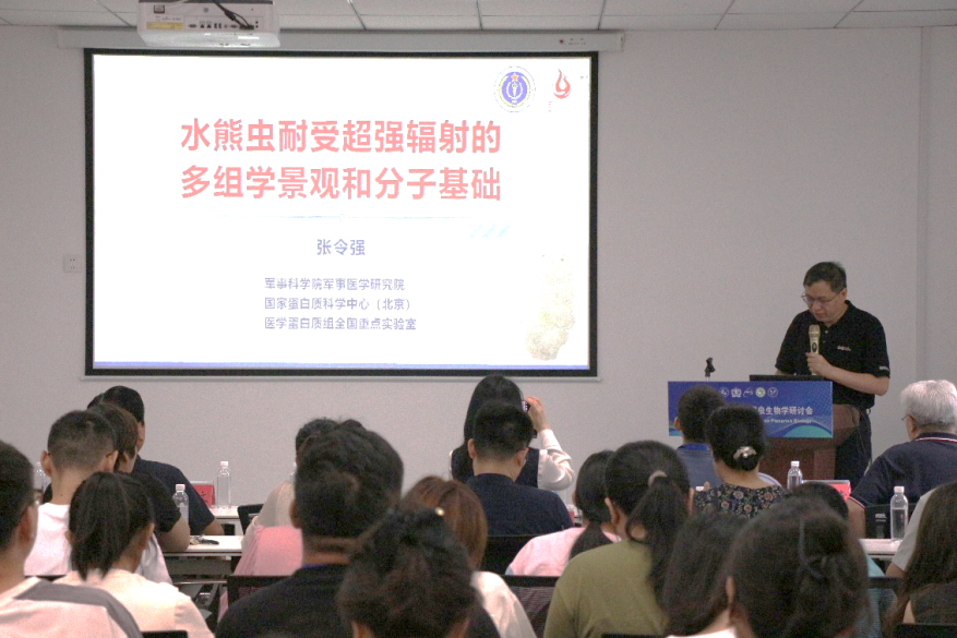 开幕式后,国家蛋白质科学中心张令强研究员为研讨会作特邀主旨报告——《水熊虫耐受超强辐射的多组学景观与分子基础》,深入解析了水熊虫极端耐受能力的分子机制与多组学研究策略,为涡虫及其他模式生物研究提供了全新视角和方法论。