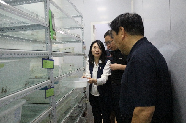 与会代表在涡虫培养室参观