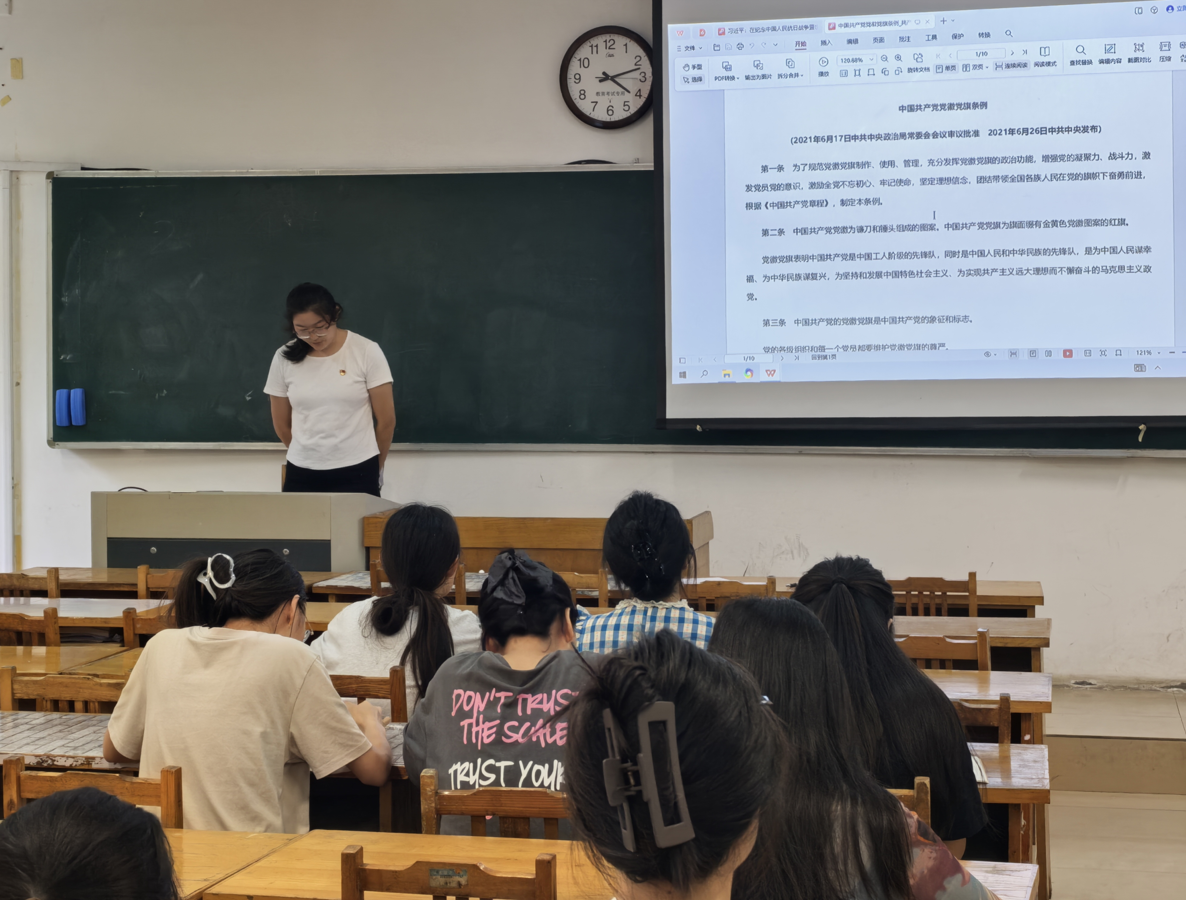随后支部书记王子怡领学《中国共产党党徽党旗条例》,重点解读党徽党旗的象征意义、制作规范与使用要求。会议指出,全体党员需将党徽党旗知识作为党史学习教育、党员教育培训的重要内容,在科研、实践中规范使用党徽党旗图案,杜绝任何损害党的形象的行为。
