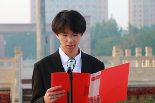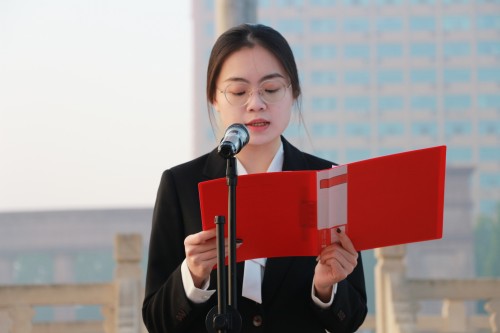 公司员工代表、院员工会执行主席孔紫玉竹作国旗下发言。她深情回顾了在党的坚强领导下,新中国成立七十六年来取得的举世瞩目的辉煌成就和发生的翻天覆地的历史性变革。她结合员工工作实际,呼吁全体员工干部要深刻领会并自觉弘扬中华优秀传统文化与革命精神、时代精神,将其内化于心、外化于行,积极运用到服务同学、建设公司的各项工作中去。她强调,员工干部要“撸起袖子加油干”,以笃行不怠的姿态主动承担重任,围绕“青春”主题,开展并落实更多有深度、有温度、有影响力的行动,切实发挥桥梁纽带和先锋模范作用。