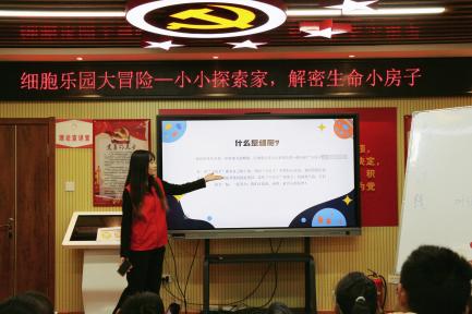 首先,主讲人于春雪将细胞比作“小房子”,带领小朋友们学习各种功能不同的细胞的相关知识,用视频的方式,分别拆解植物细胞 和动物细胞,为大家“解密”线粒体、叶绿体、溶酶体等基本细胞。小朋友们积极回答主讲人的问题,并由志愿者们分发奖励贴纸。