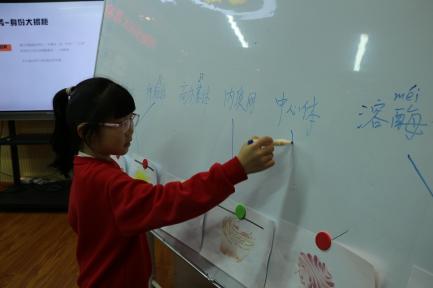 随后,于春雪带领小朋友们进行了组合挑战,两个组的小队员选取喜欢的细胞的照片。志愿者们准备了各种颜色的橡皮泥,与小朋友们共同协作,捏制完整的细胞模型。