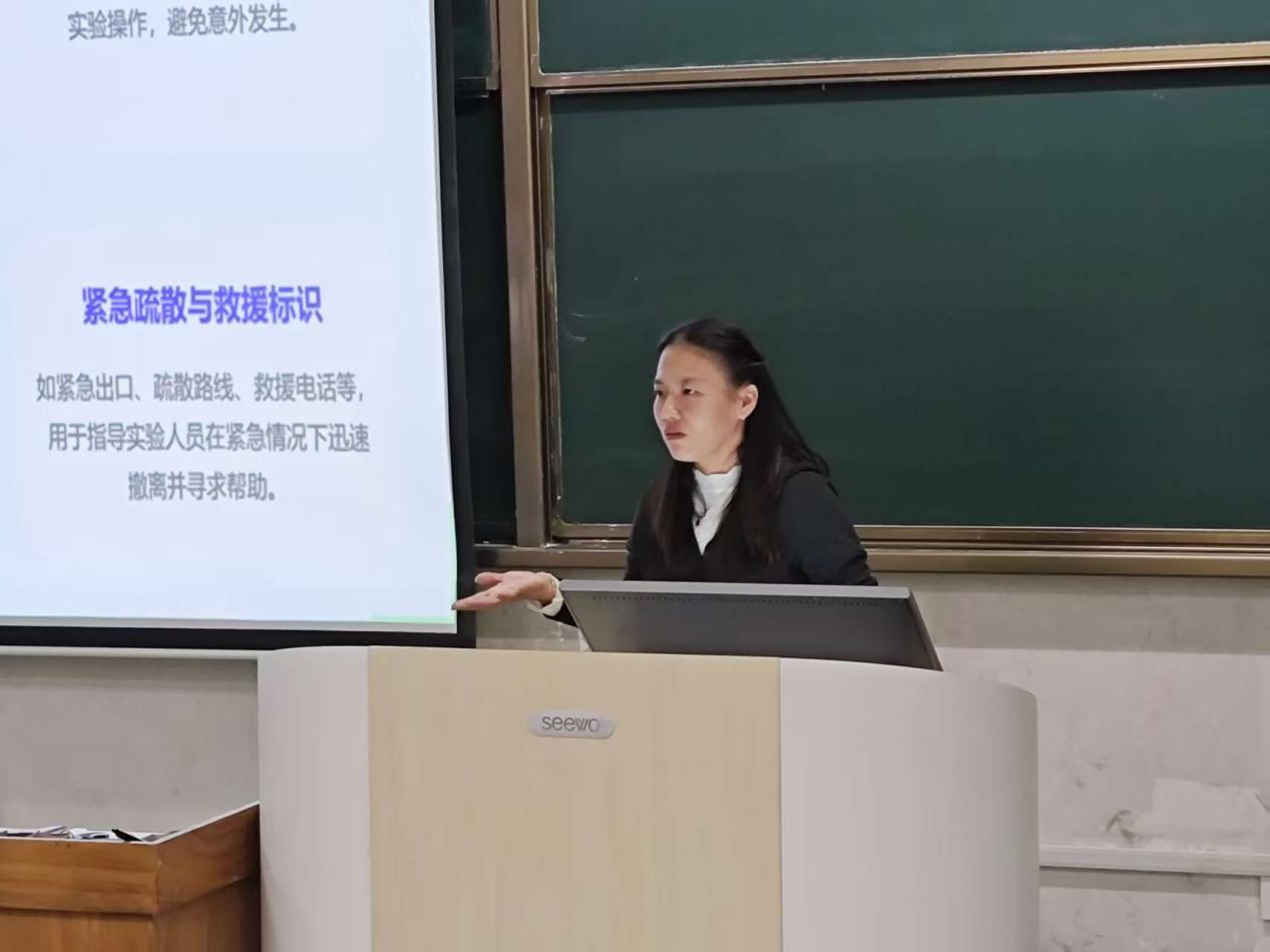 会议伊始,吕娟对2025级新生表示热烈欢迎,并就本次报告会的教育目的作了简要介绍。随后,她分别从实验室安全教育的背景及意义、公司实验中心基本情况、实验室安全基础知识、实验室安全操作规范、实验室化学品安全管理、实验室电器设备安全使用、实验室生物安全级防护、实验室安全事故案例分析几个方面作了生动讲解。吕娟通过视频的形式,让同学们与实验室老师“面对面”,走入实验室了解公司实验中心资产,了解认识各类实验仪器。同学们仔细倾听实验室安全事故分析,从教训中明确实验室安全意识的重要性。最后,她介绍了2025级新生实验室准入考试的相关内容,就考试时间、考核办法和组织形式向新生作了说明。