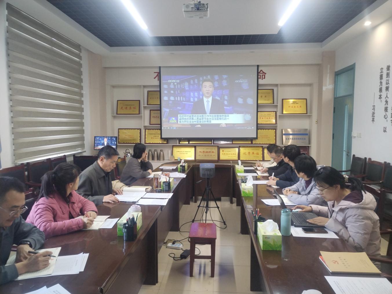 与会人员以收看《新闻联播》视频的方式,集体学习了习近平总书记关于对全面依法治国工作作出的重要指示和中央全面依法治国工作会议精神。党委副书记兼纪委书记姜素琼传达学习了公司党委《关于深入学习宣传贯彻党的二十届四中全会精神的通知》,王光坊传达学习了公司2025年秋季学期党委教师工作委员会扩大会议精神、《betway西汉姆联教师师德考核办法》和《意识形态工作责任制实施办法》。