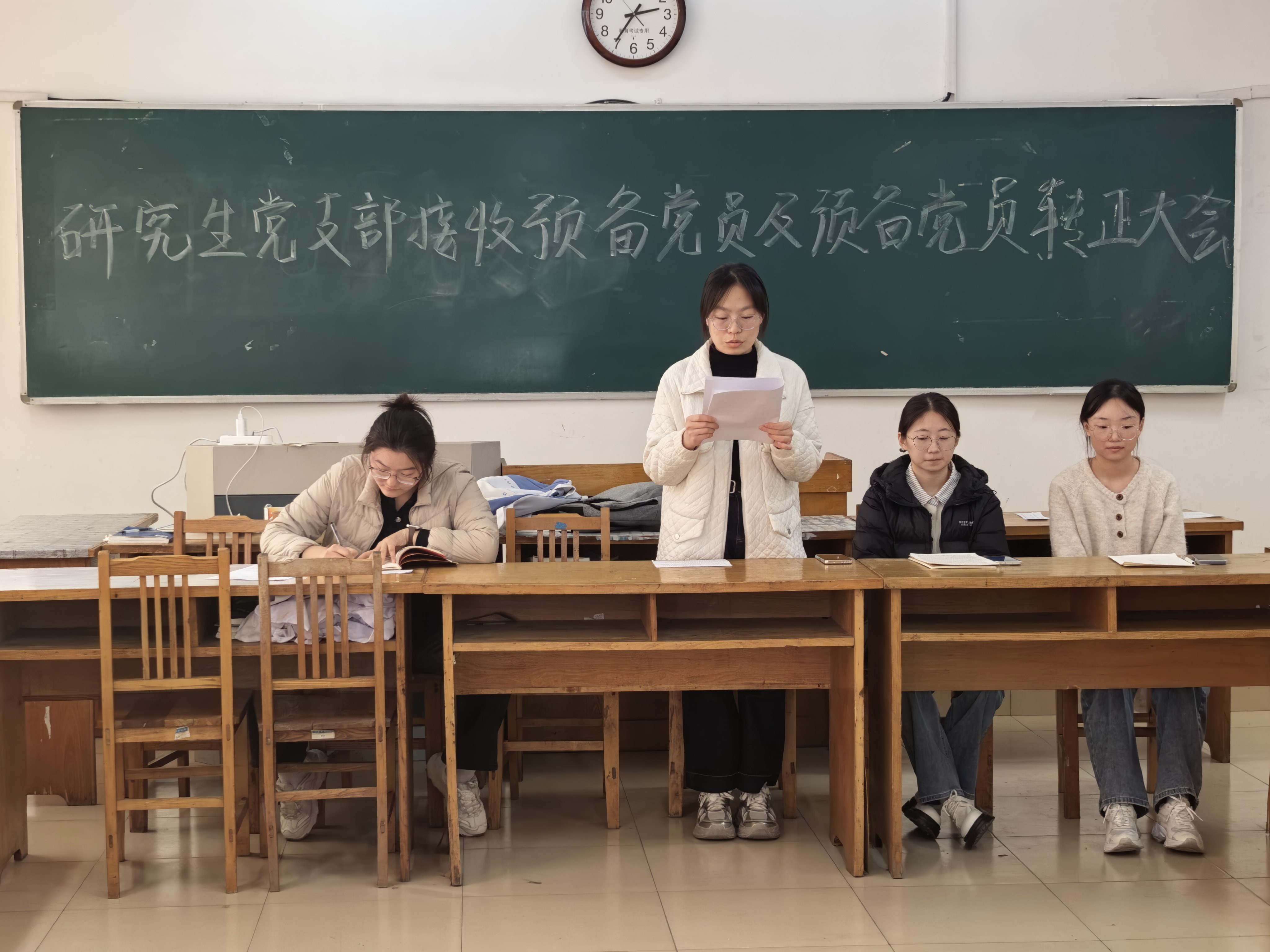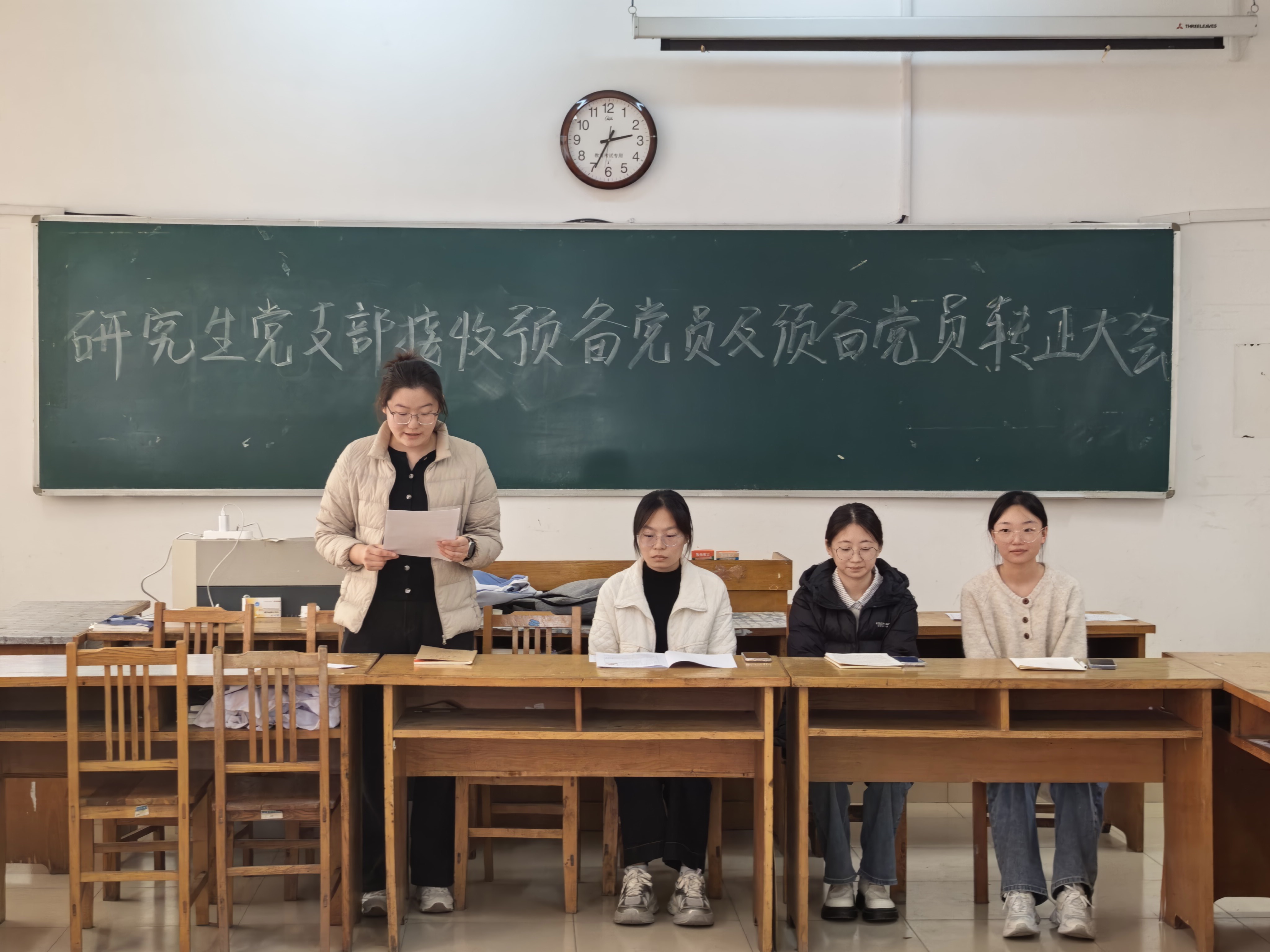 经过党支部成员的充分讨论,大会决议认为,魏凯月同志经过组织的培养,在思想政治素质、学习科研等方面,已基本具备党员的条件,同意接收其为中共预备党员。李晓媛、朱慧莹同志符合党员标准,同意按期转正。