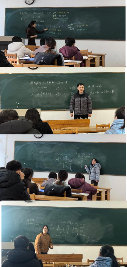 本次考核共有5位青年教师参加。试讲以板书为媒介,要求教师完全脱稿,在10分钟内完整呈现一个课堂节段的授课过程。各位教师课程导入清晰、内容组织合理、板书设计规范、讲解层层递进,备课充分、准备扎实,展现了良好的课堂驾驭能力与不断成长的教学素养。