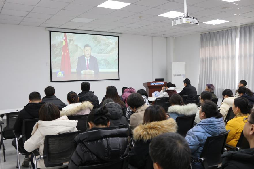 会上,大家集体观看学习了习近平主席2026年新年贺词,重温了过去一年和“十四五”期间,在党中央坚强领导下,我们克服重重困难取得的辉煌成就,同时也进一步明确了我们面临的困难挑战和目标任务。号召大家提振精神,立足岗位,铆足干劲,在推动特色强院建设和公司现代化高水平大学建设中再创佳绩。